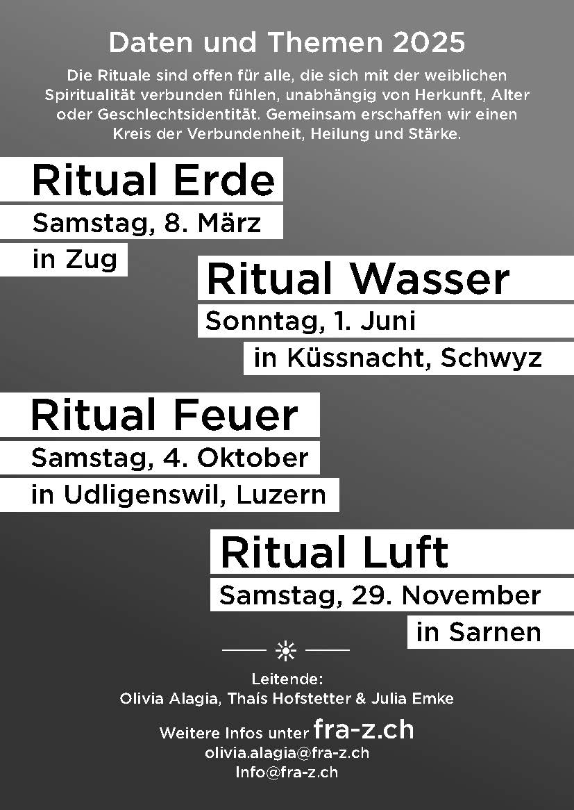 Am Samstag, 29. November 2025 in Sarnen. Details folgen. Die Rituale der Elemente bi ...